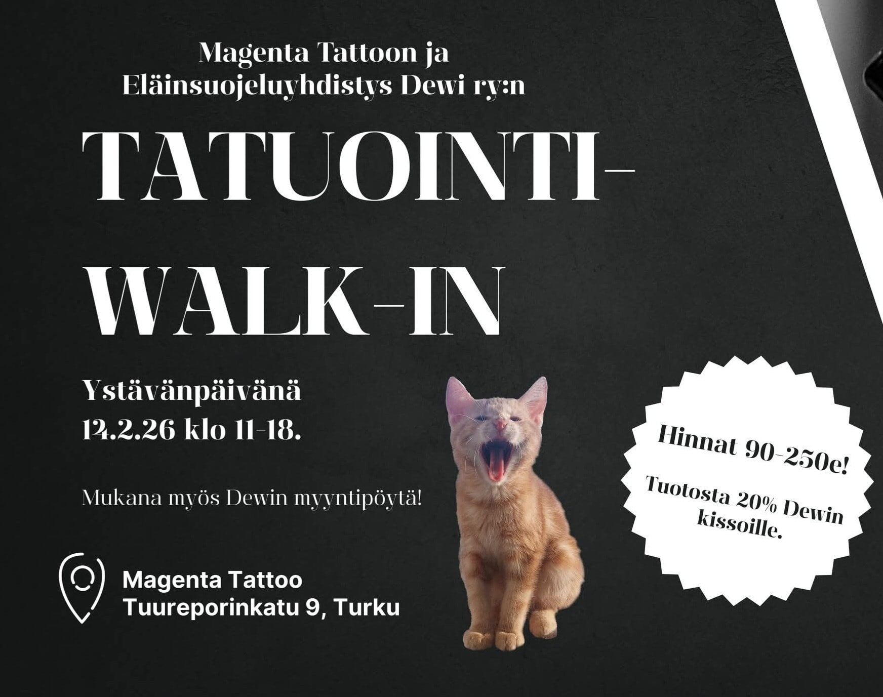 Turun seudulla toimiva Eläinsuojeluyhdistys Dewi ry on erikoistunut populaatiokissojen auttamiseen ja toimii täysin vapaaehtoisvoimin. Konkreettisen kissojen auttamisen lisäksi tavoitteenamme on nostaa kissan arvoa Suomessa ja jakaa todenmukaista ja ajantasaista tietoa populaatiokissoista sekä yleistä kissatietoutta laajalle yleisölle.